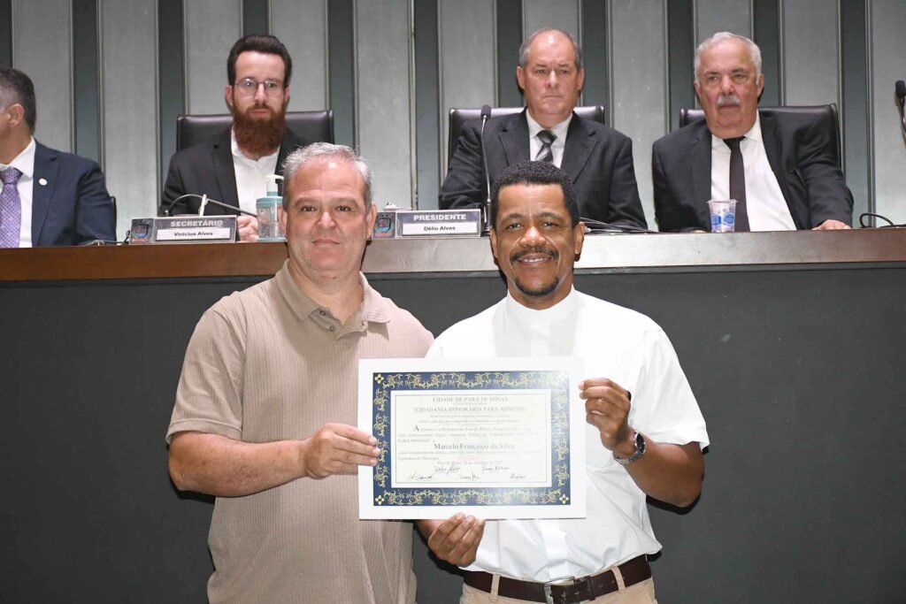 A solenidade foi marcada por emoção e reconhecimento público, reforçando os laços de gratidão da cidade com todos aqueles que, de forma direta ou indireta, colaboraram para o crescimento de Pará de Minas.